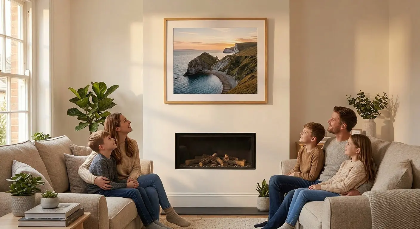 Large frames from 16×12 up to 24×20 are designed to be focal points. A 20×16 frame (50.8×40.6 cm) above a fireplace or a 24×20 frame (61×50.8 cm) centred on a living room wall creates an instant talking point. At these sizes, image quality matters enormously. Make sure your source photo is high resolution (at least 300 DPI at the print size) to avoid pixelation.