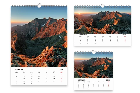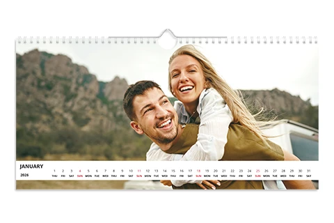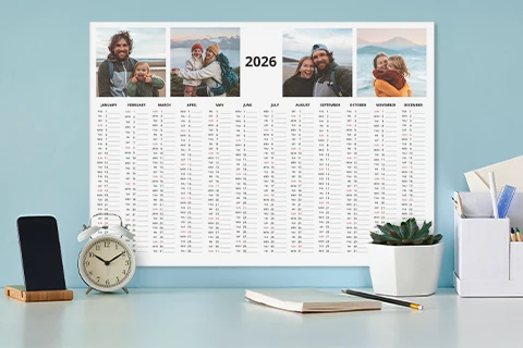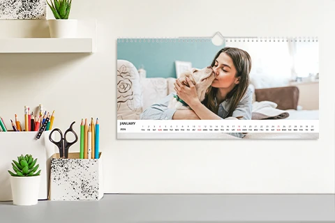 Our diverse range of custom calendars means there’s something for every taste. You’ll find the perfect solution for your study, kitchen, or office. We’ve got smaller options and also extra large personalised calendars like the panorama calendar – perfect for stunning beach and landscape shots.