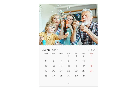 Our photo calendars are fully customised items. Once you’ve chosen a design and size format, you can make each page totally unique on our versatile design page. You choose the photo layout, the text content, and any added design elements you want.