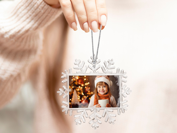 The personalised snowflake decoration is a refined ornament that will bring some sparkling Christmas magic into your home. The transparent snowflake is made to a delicately beautiful design – with a custom print of your chosen photo at its centre. Let your precious memories gleam and sparkle!